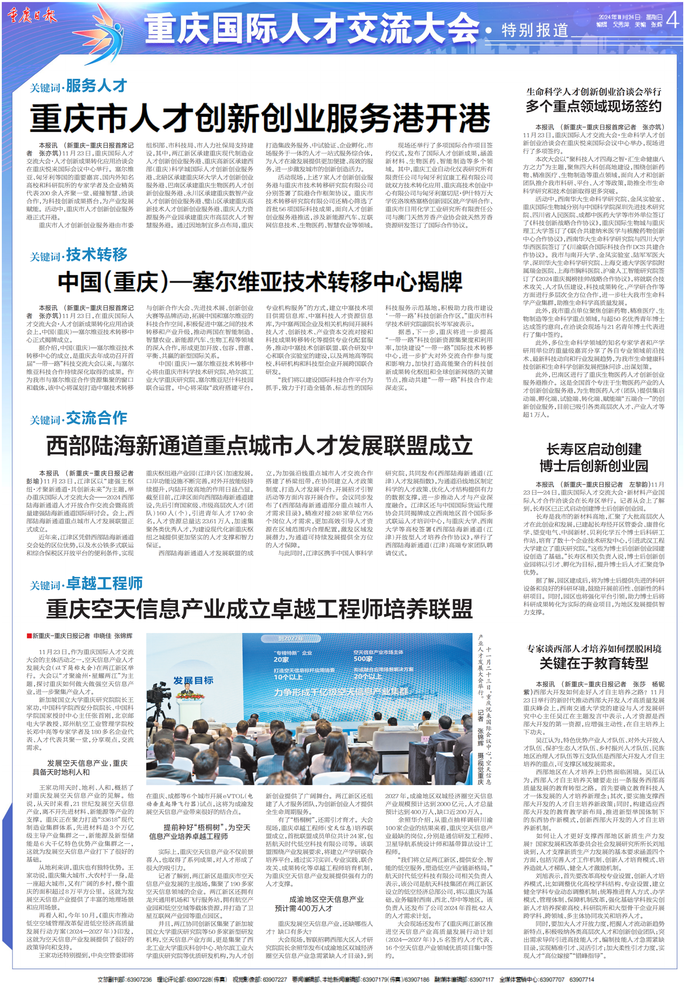 11月23日,在重庆国际人才研讨大会·人才创新成果转化应用洽谈会上,中国(重庆)—塞尔维亚技术转移中心正式揭牌创建。